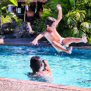 Nous sommes en été. Qui dit été dans les Caraïbes, dit risque de cyclone. Ici, c’est pareil ! L’année passée en mars, un cyclone de force 5 a ravagé l’île et celles avoisinantes. On peut encore apercevoir des échafaudages par-ci par-là témoignant les travaux de reconstruction. L’île est magnifique. L’eau turquoise est partout. Ce qui est incroyable et qui nous émerveille totalement c’est la végétation. Il y a des palmiers oui, mais c’est rempli de sapin ou d’arbres de forêts comme chez nous. Ce qui fait que quand on regarde la côte, on a l’impression d’être au Canada mais l’eau est bleu turquoise et le sable est blanc ! Vraiment c’est bluffant, apaisant, magnifique ! Nos deux premiers jours on les parcourt entre plages et piscines pour le plus grand bonheur des enfants. Ah oui, ici on ne se déplace qu’en voiturette de golf ! Génial !