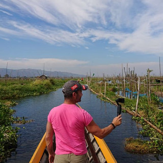 Nous arrivons au Lac Inle et montons immédiatement à bord de pirogues motorisées et aménagées avec des chaises en bois. Maximum 4 personnes par bateau, nous devons donc nous séparer. Filles d’un côté, garçon de l’autre ! Le Lac Inle est connu pour ces habitations, temples et monastères sur pilotis. Pour ces jardins flottants et également pour la pêche traditionnelle birmane qui y est pratiquée. Nous avons 1 heure de bateau jusqu’au restaurant auquel nous ferons notre pause de midi. Suffisant pour notre suédois pour succomber au bercement de la pirogue et s’endormir profondément. Après le lunch, nous visiterons tout une série de temples et monastères très beaux. Avec un seul bémol tout de même : c’est quoi tous ces leds et néons multicolores clignotant placés derrière la tête de Buddha ?? On se croirait en soirée Disco !!