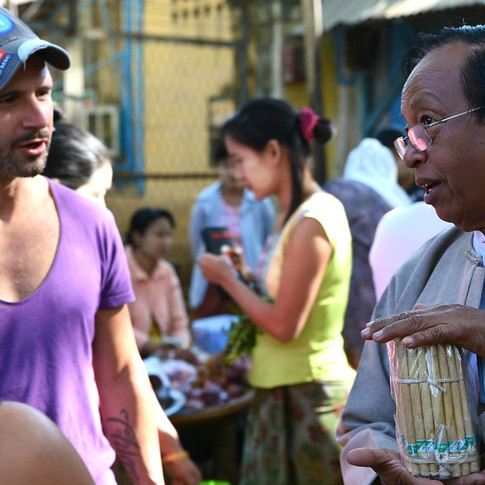 Un soir nous avons pris un bateau sur l’Irrawaddy pour assister au coucher du soleil. Un bateau rien que pour nous, des cocktails à volonté, des cigares achetés au Lac Inle et un soleil rouge digne d’Apocalypse Now ! Voilà le décor est planté. Non, il vous manque quelque chose : l’odeur ! C’est le blond qui s’en chargera. En effet, Mattias a répété 15 fois qu’il devait aller aux toilettes. Le capitaine du bateau comprend qu’il doit faire pipi, il l’amène alors à l’arrière du bateau pour le faire uriner dans le fleuve. Mais non, il fait comprendre que ce n’est pas par là que ça veut sortir…Le capitaine nous dit qu’il ne peut rien faire car il n’y pas de toilettes sur le bateau mais qu’il peut nous déposer vite sur la rive. Pas assez vite..et là c’est le drame ! On ne donnera pas plus de détails, on vous laisse imaginer…
