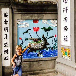 On a pas vécu, mangé et dormi sur la voie de chemin de fer à Hanoi, on a aussi vu autre chose ! Nous nous sommes promenés une journée complète dans le vieux Hanoi et on est tombé sous le charme. C’est une ville qui est restée très authentique malgré la circulation, le monde et la pollution. Rien à voir avec Ho Chi Minh que nous avons trouvé très occidentalisée. La vieille ville se concentre autour du lac Hoan Kiem au milieu duquel se trouve également un temple. L’entrée est payante, on a passé notre tour. Comme on vous disait, on sature un peu en visite de temples. En revanche, le pont rouge qui mène au temple est charmant.