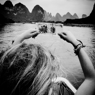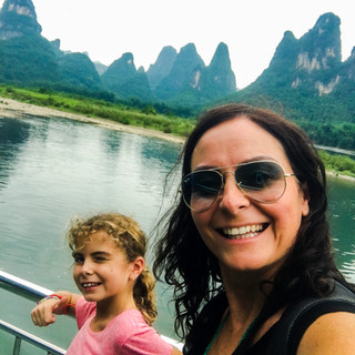 Nous sommes sur une bateau de moyenne taille avec une quinzaine de chinois. C’est vraiment tranquille. La croisière dure une petite heure et les paysages sont sublimes. Cela répond à nos attentes, voir plus ! Nous passons devant le paysage dessiné sur le billet de 20 Yuan. Tous les chinois font les selfies avec le billet de 20 Yuan…on se devait de faire les chinois nous aussi....surtout maman!